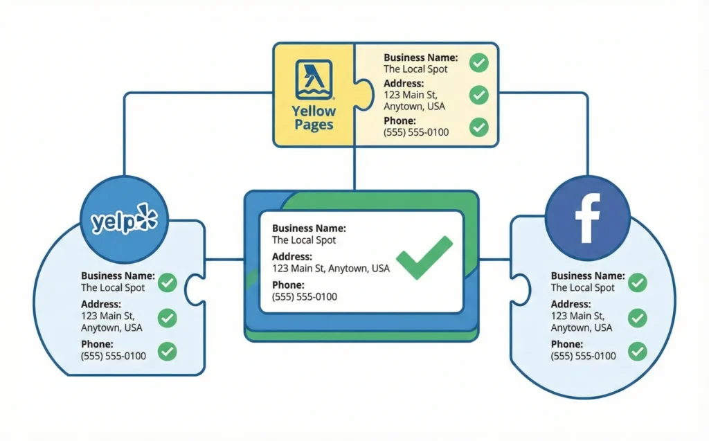 Key Takeaway: Local citation building is about accuracy. Same name, same address, same phone—everywhere.