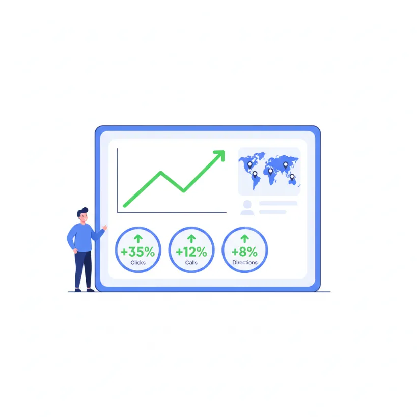 Track these metrics monthly: Google Business Profile views and clicks, phone calls from Google, direction requests, website visits from local searches, and your ranking for target keywords.