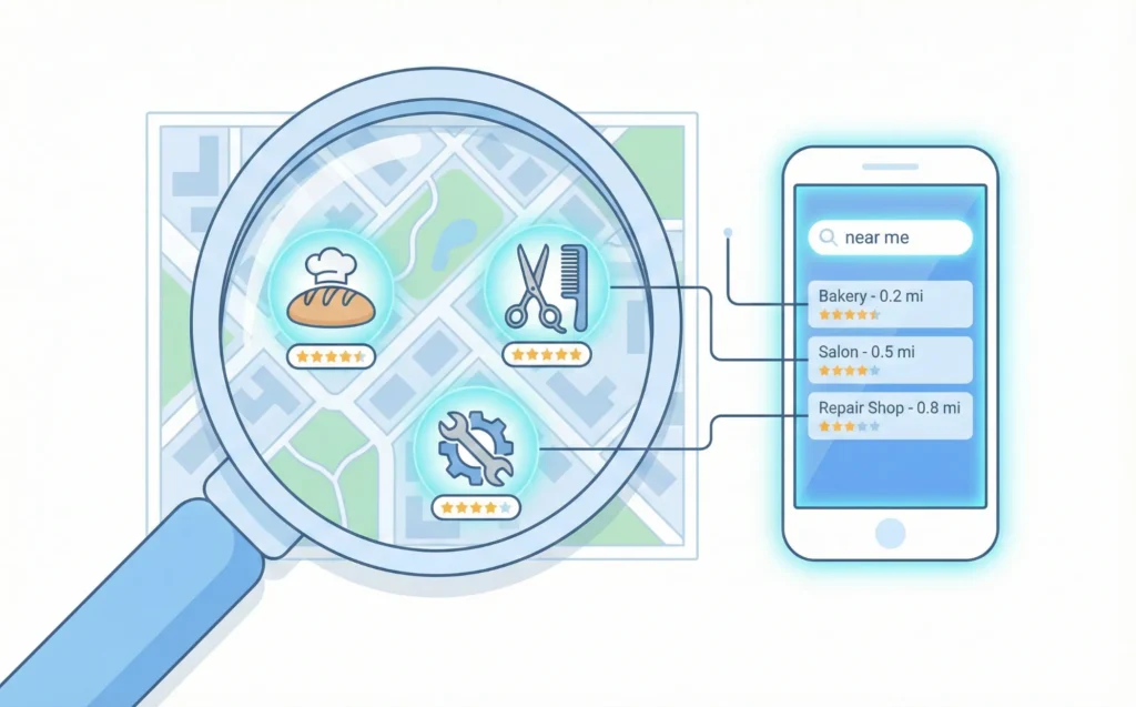 Picture this scenario. Someone nearby needs exactly what you sell. They pull out their phone and type “plumber near me” or “best coffee shop downtown.”